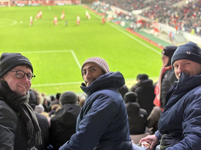 Søndag aften tog 12 af deltagerne som et frivilligt punkt til Essen for at se hjemmeholdet