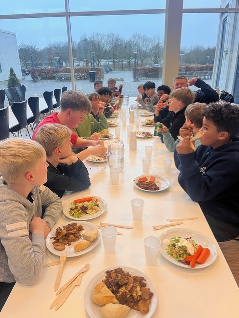 AGF 1880's U12-hold til fællesspisning. Foto: Lars Schou Larsen