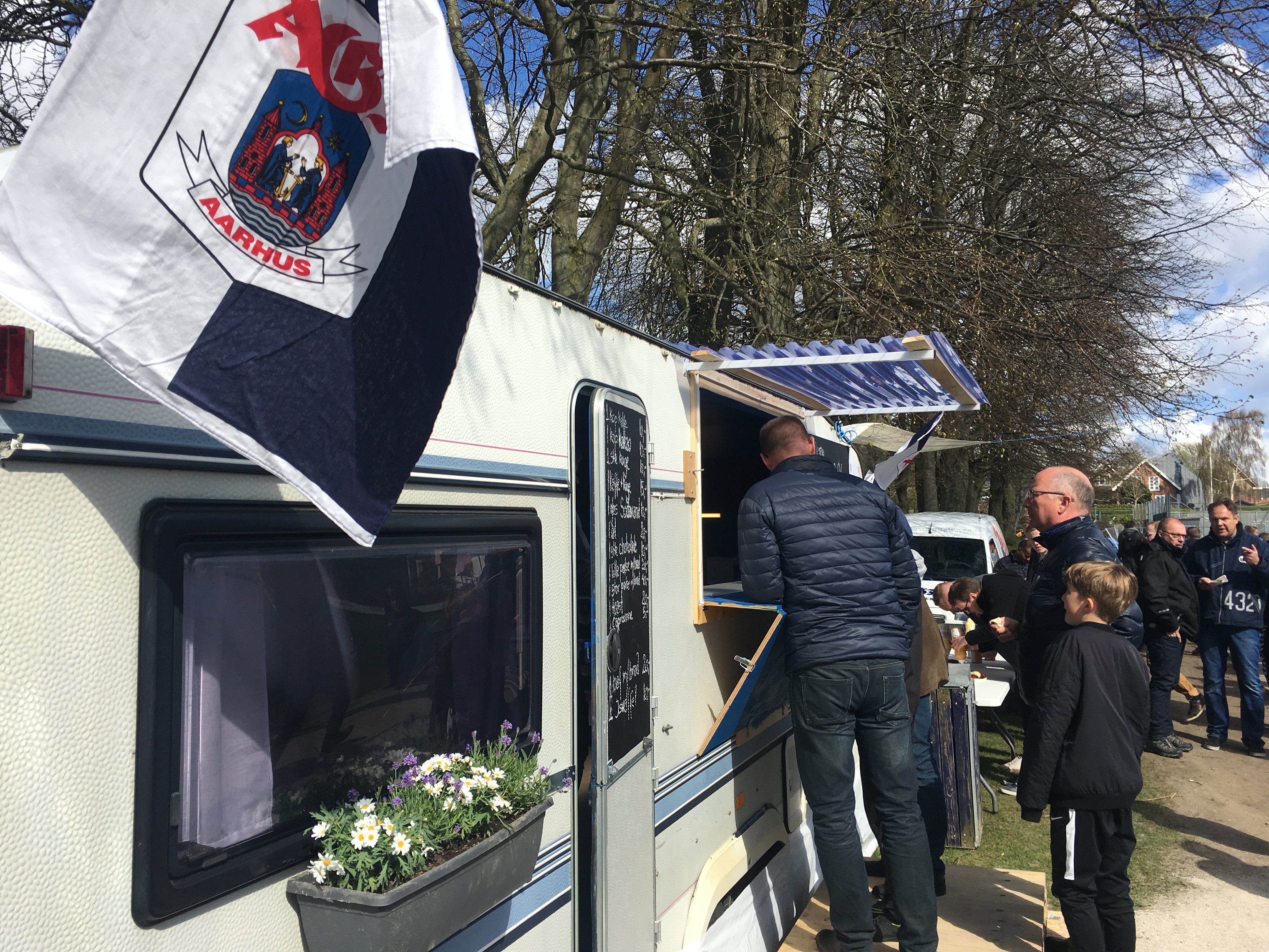 Og ikke nok med det: Hausner har på ganske få dage ombygget en camping-vogn til en rullende AGF Café, hvorfra de mange fristelser kan langes over disken. Som det fremgår af billederne, er campingvognen naturligvis i stor stil dekoreret i AGF-farver. Campingvognen havde premiere til U17's hjemmekamp mod FC København, og den vil blive åbnet, når der er mange kampe på Fredensvang - blandt andet når Brøndby kommer på besøg lørdag d. 13. maj i det, der meget vel kan blive en afgørende kamp om DM-guldet i U17 Ligaen.