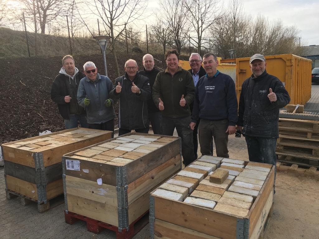 Her 75 år senere er klubhuset som bekendt blevet revet ned, men viljen til at yde en indsats til fordel for fællesskabet er stadig intakt. Lørdag brugte ti Old Boys-spillere således fem timer på at rengøre de mursten fra den oprindelige del af klubhuset, som er blevet solgt i de seneste uger. Overskuddet fra salget af murstenene går ubeskåret til det nye klubhus, der nu opføres, og Old Boys-spillernes uegennyttige arbejde får hele klubben på den måde glæde af.