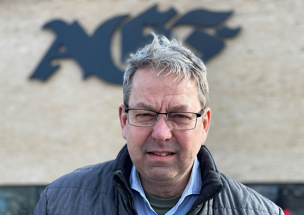 Steffen Olesen foran AGF’s nye klubhus i Fredensvang (Foto: Hans Petersen)