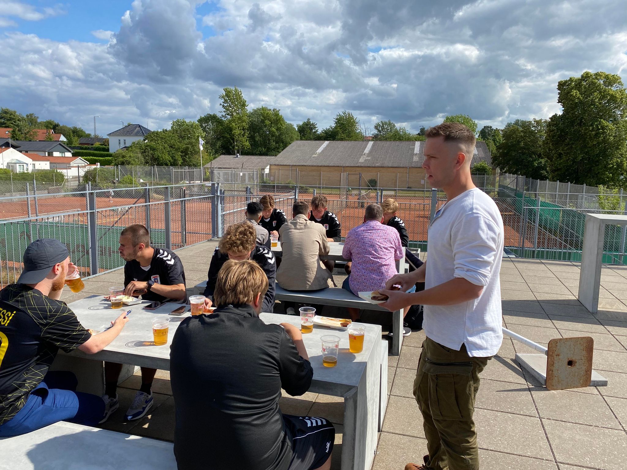 Her blev der grillet pølser og uddelt fadøl på terrassen, mens snakken gik og de tilmeldte kunne hilse på hinanden på kryds og tværs af årgange.